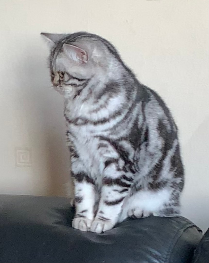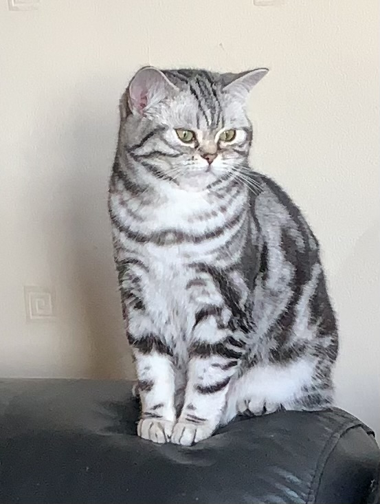 Our beautiful homebred young girl, the first of Ice Florence Silver Buddy’s kittens, she has inherited her fathers fabulous dense black perfect pattern and his gentle affectionate nature.